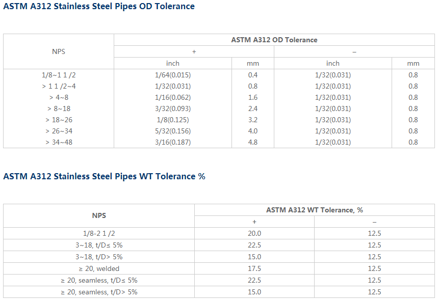 外径:NPS 1/8"至30" WT: SCH 5S, 10S, 40S, 80S L: 5.8M, 6M, 11.8M, 12M或任何其他指定长度制造工艺:无缝和焊接。等级:TP304、TP304L、TP316、TP316L、TP309S、TP310S、TP317、TP317L、TP321、TP347、TP348、TP904L